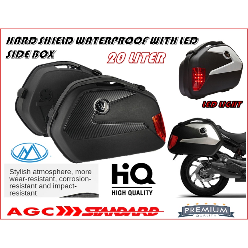 MODENAS WATERPROOF V35 SIDE BOX ABS PLASTIC WITH LED LIGHT HARD SHEILD NAKED BIKE SCOOTER TOURING BIKE