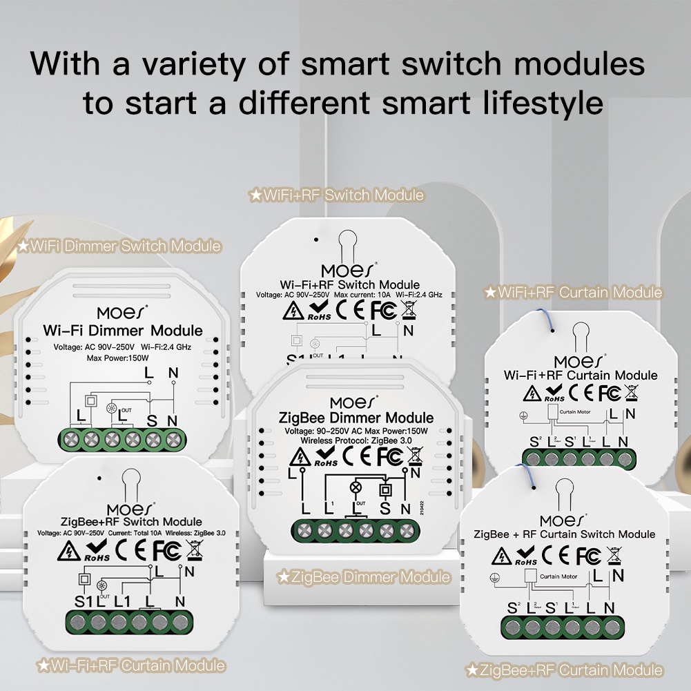 MOES Smart ZigBee WiFi Switch Module Light Dimmer Curtain Switch Smart Life App Remote Control Alexa Google Home Voice Control