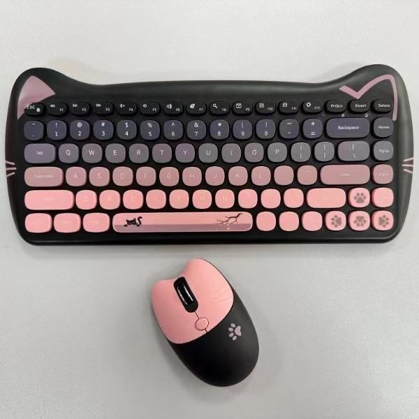 MOFII Geezer Cute Cat 2.4G Wireless Keyboard Mouse Set Office Table PC Laptop Gifts Girls Kitty