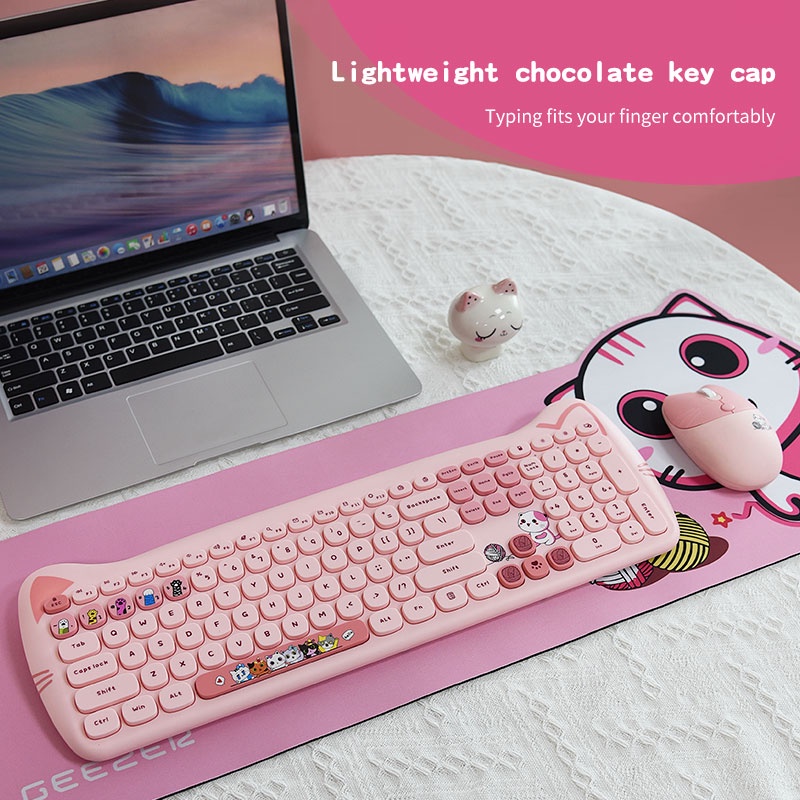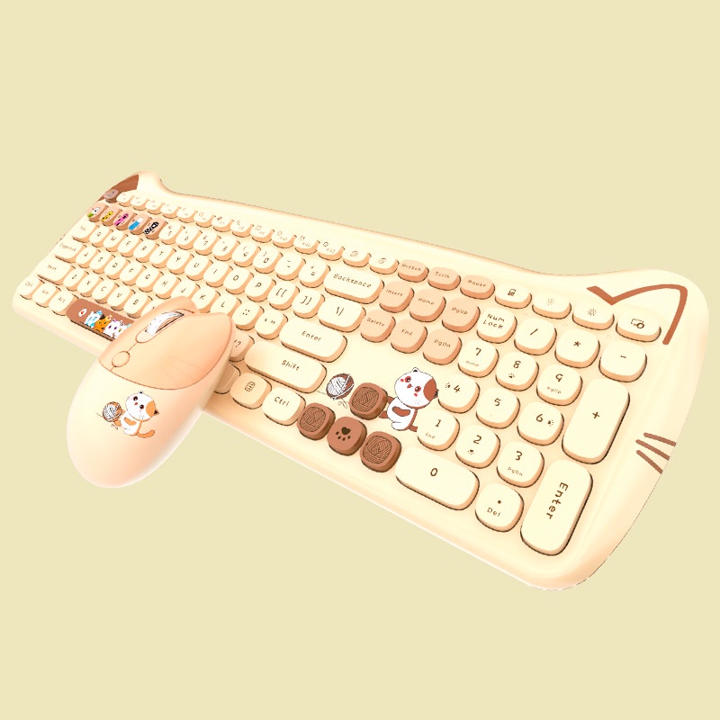MOFII Geezer Cute Cat Plus Wireless Keyboard Mouse Set Office PC Laptop Gift Table
