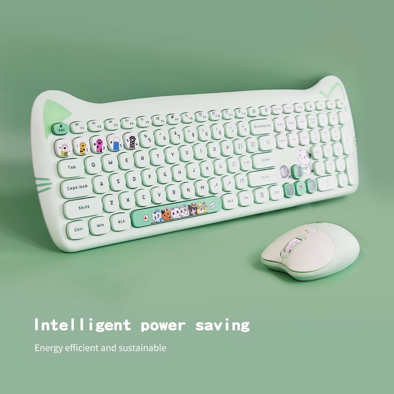 MOFII Geezer Cute Cat Plus Wireless Keyboard Mouse Set Office PC Laptop Gift Table