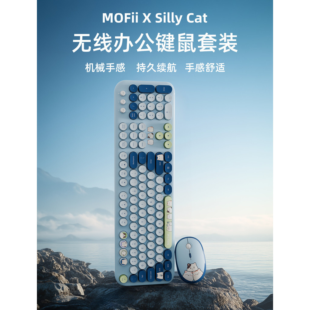 MOFII Silly Cat Wireless Keyboard Mouse Set PC Laptop Office Gifts Girls Present Love Table