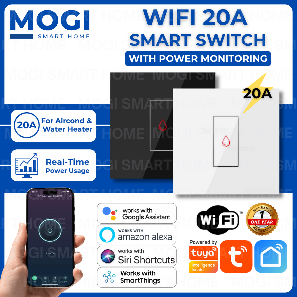 MOGI Wifi 20A Smart Switch Power Monitor for Aircond/Water Heater Tuya Smart Life Alexa Google Siri