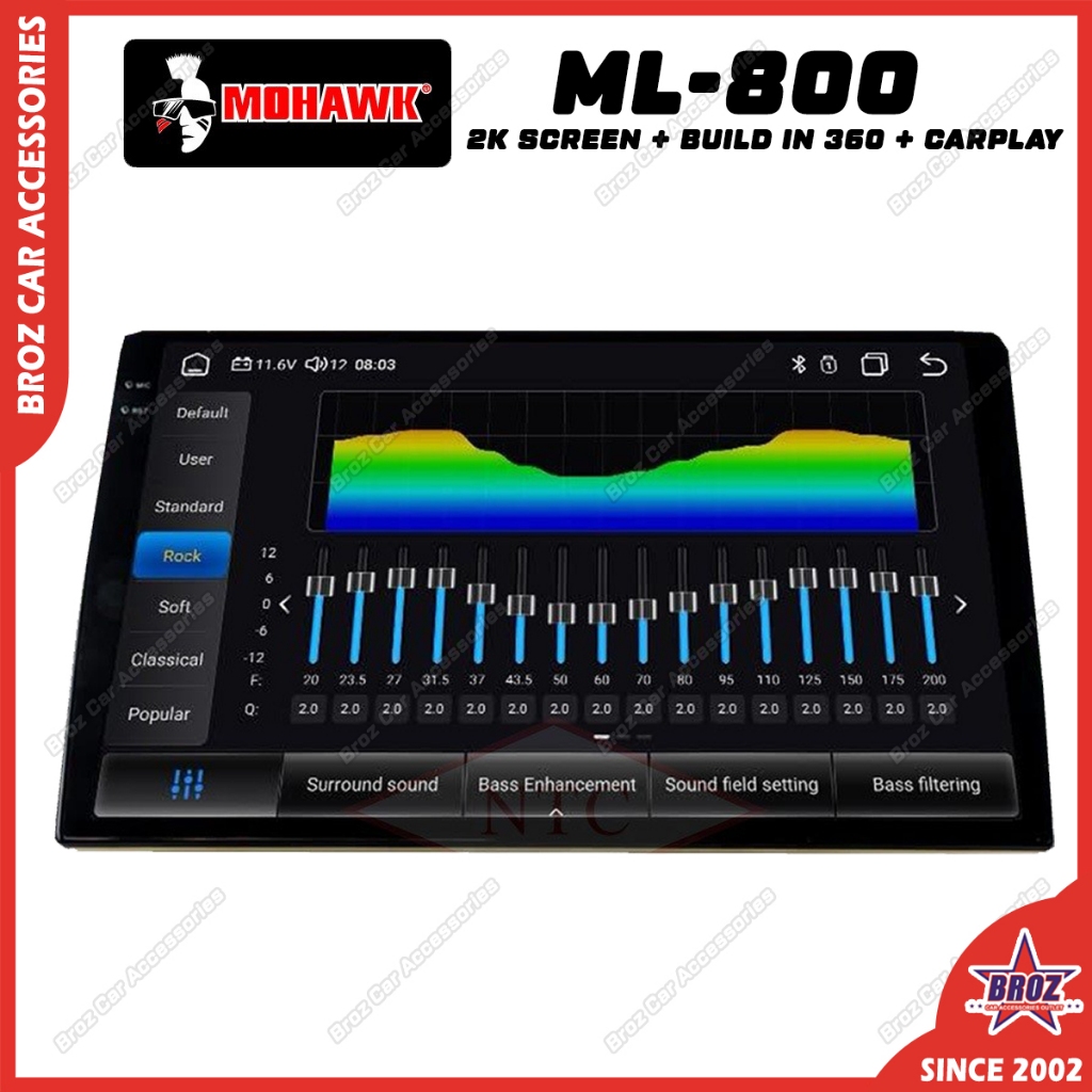 MOHAWK ML-800 SERIES Android Player 2K Screen Built In 360 System Carplay Kereta Car Audio Besar Multimedia 8 Core DSP