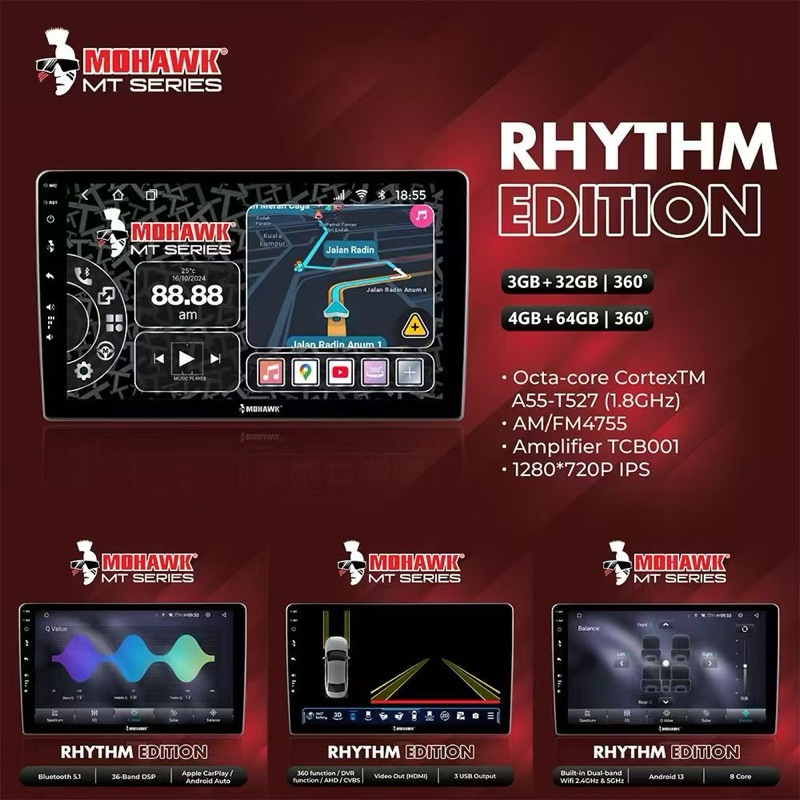 MOHAWK MT SERIES RHYTHM EDITION ANDROID PLAYER PREMIUM QUALITY (FOC AHD REVERSE CAMERA,OEM CASING+PLUG & PLAY SOCKET)
