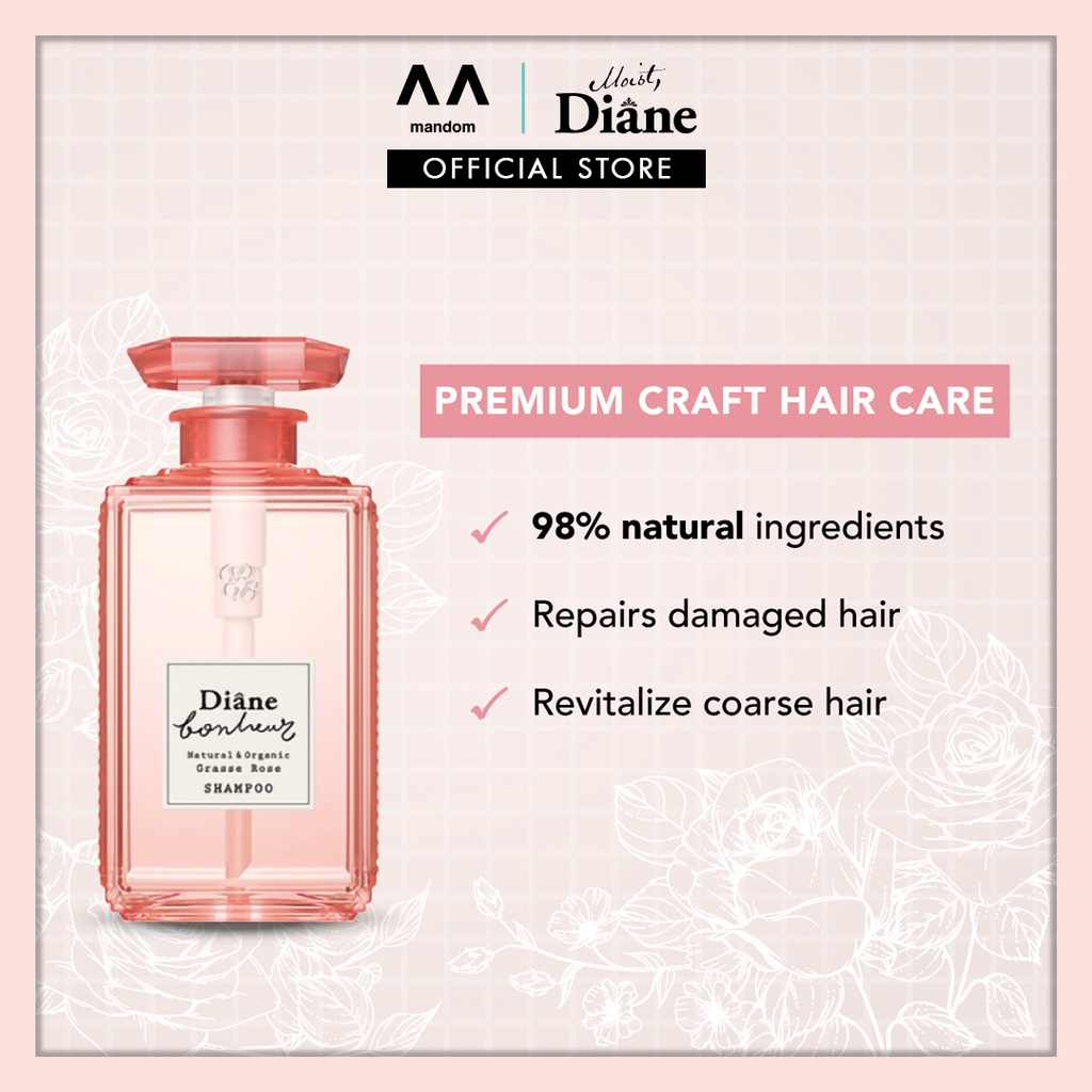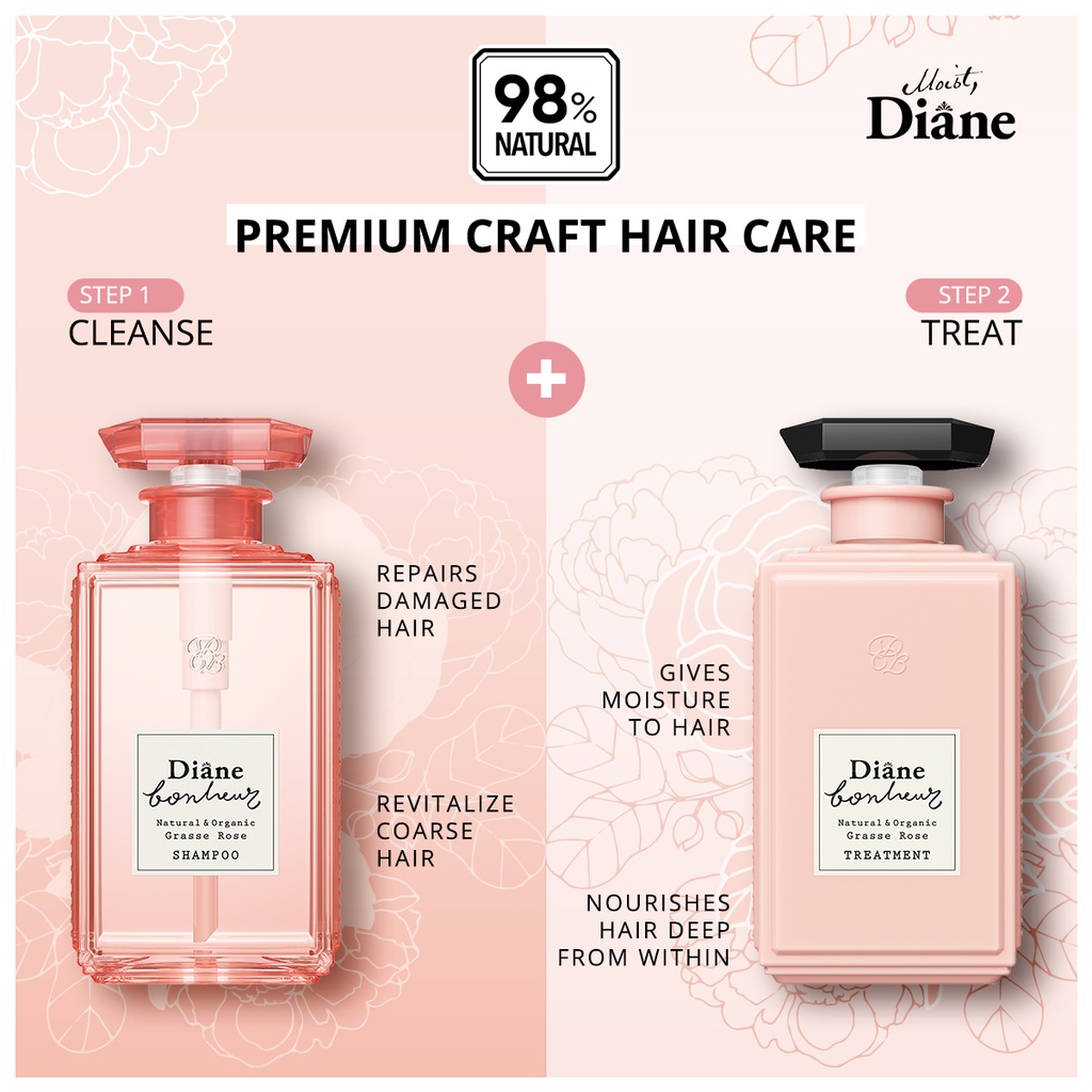 MOIST DIANE Bonheur Grasse Rose Shampoo 500ml (moist diane shampoo, moist diane bonheur shampoo, bonheur hair shampoo)