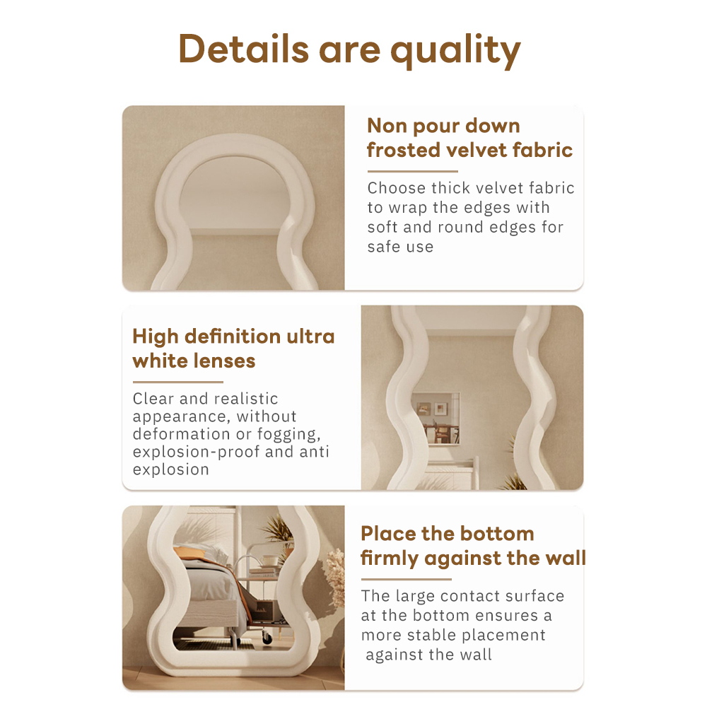 MOK Mirror 170*70CM Wave Cermin Besar Soft Cloth Edging Full Body Mirror 3 Colors Available