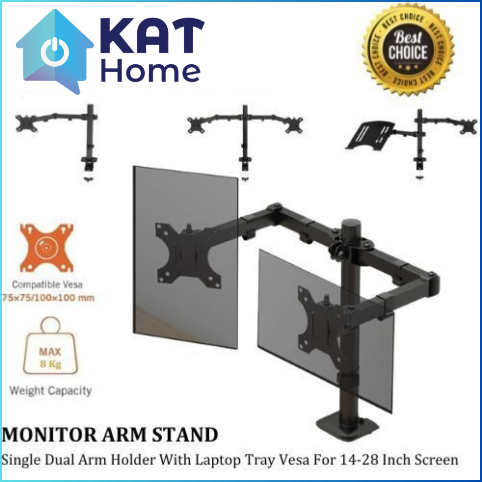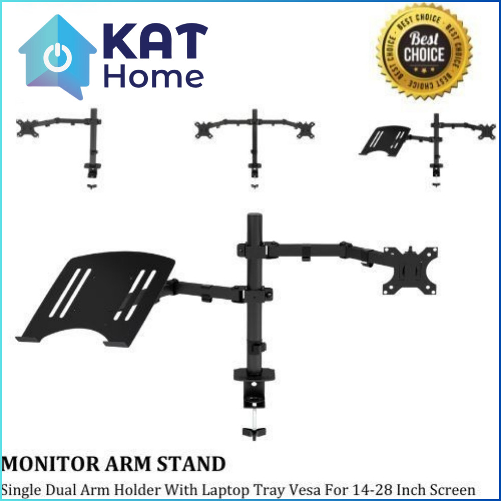 MONITOR STAND SINGLE ARM DUAL ARM WITH LAPTOP TRAY DESK MOUNT VESA 75X75 100X100 FOR 14-28 INCH SCREEN ADJUSTABLE HOLDER