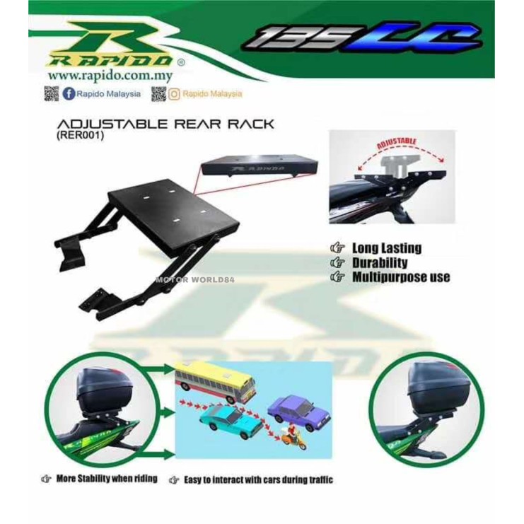 MONORACK ADJUSTABLE REAR RACK MONORACK YAMAHA LC135 V2 - V7 - 5S FOR GIVI BOX 100% ORIGINAL RAPIDO STAINLESS STEEL RACK