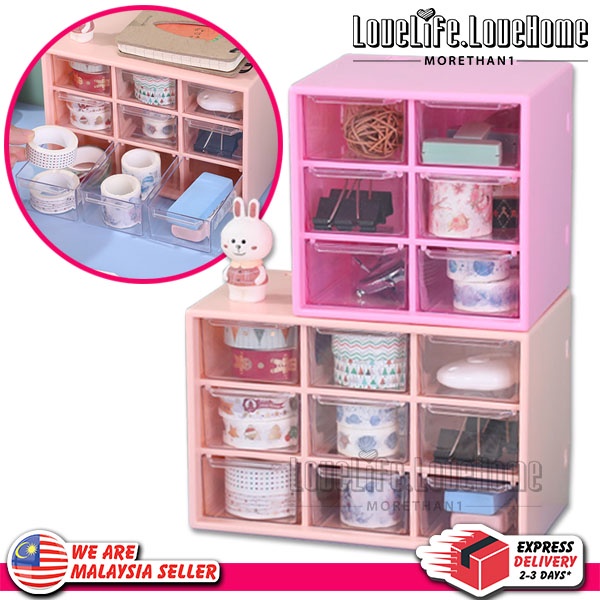 MORETHAN1 Mini Desk Organizer with Drawers Office Supplies and Jewelry Storage Case Drawers (6/9 Grid)