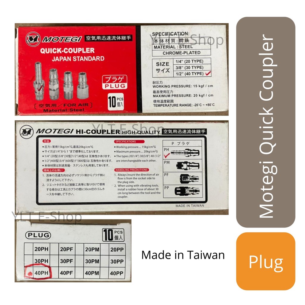 MOTEGI Quick Coupler 1/2" - 40SH, 40SF, 40SM, 40PH, 40PM, 40PF (Made in Taiwan) (Air Hose Compressor Fitting Coupler)