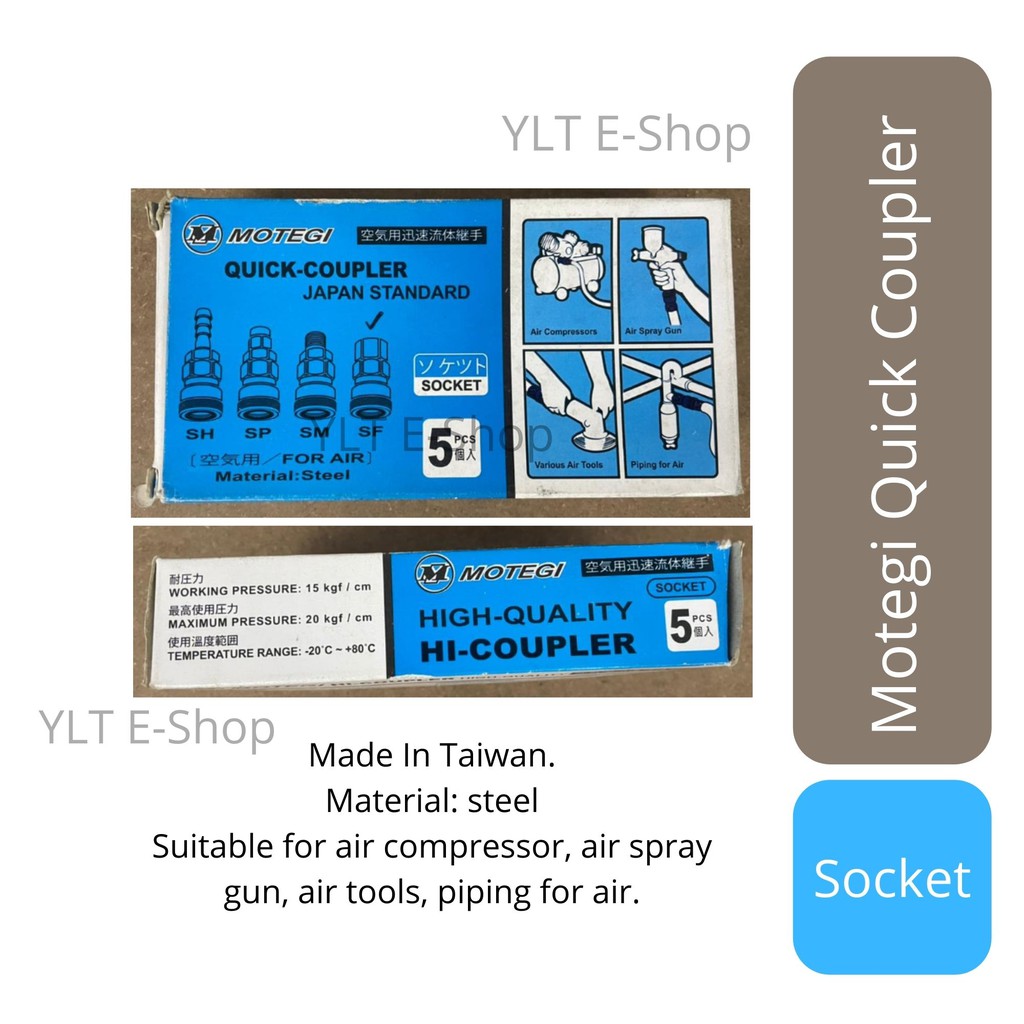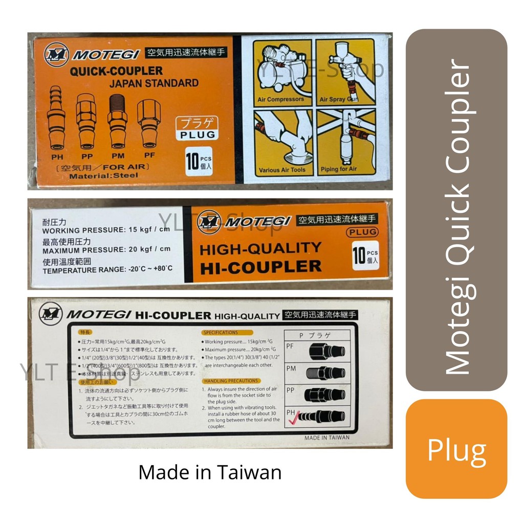 MOTEGI Quick Coupler 1/4" - 20PF, 20PM, 20PH, 20SH, 20SM, 20SF (Made in Taiwan) (Air Hose Compressor Fitting Coupler)