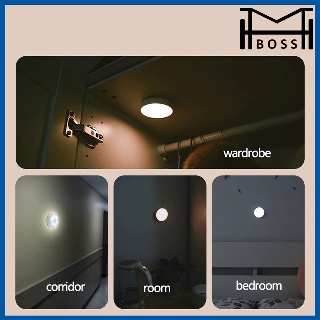 MOTION SENSOR LED LIGHT ROUND RECHARGEABLE SENSOR GERAK SENSOR PERGERAKAN LAMPU LED LONG LIGHT BAR