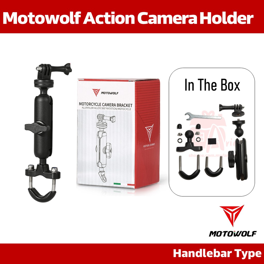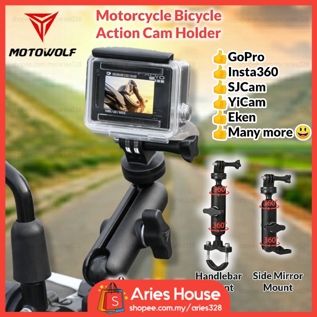 MOTOWOLF GoPro Holder Motorcycle Bicycle Bike Handle Bar Side Mirror Mount Pemegang Insta360 SJCam XiaoYi Action Camera