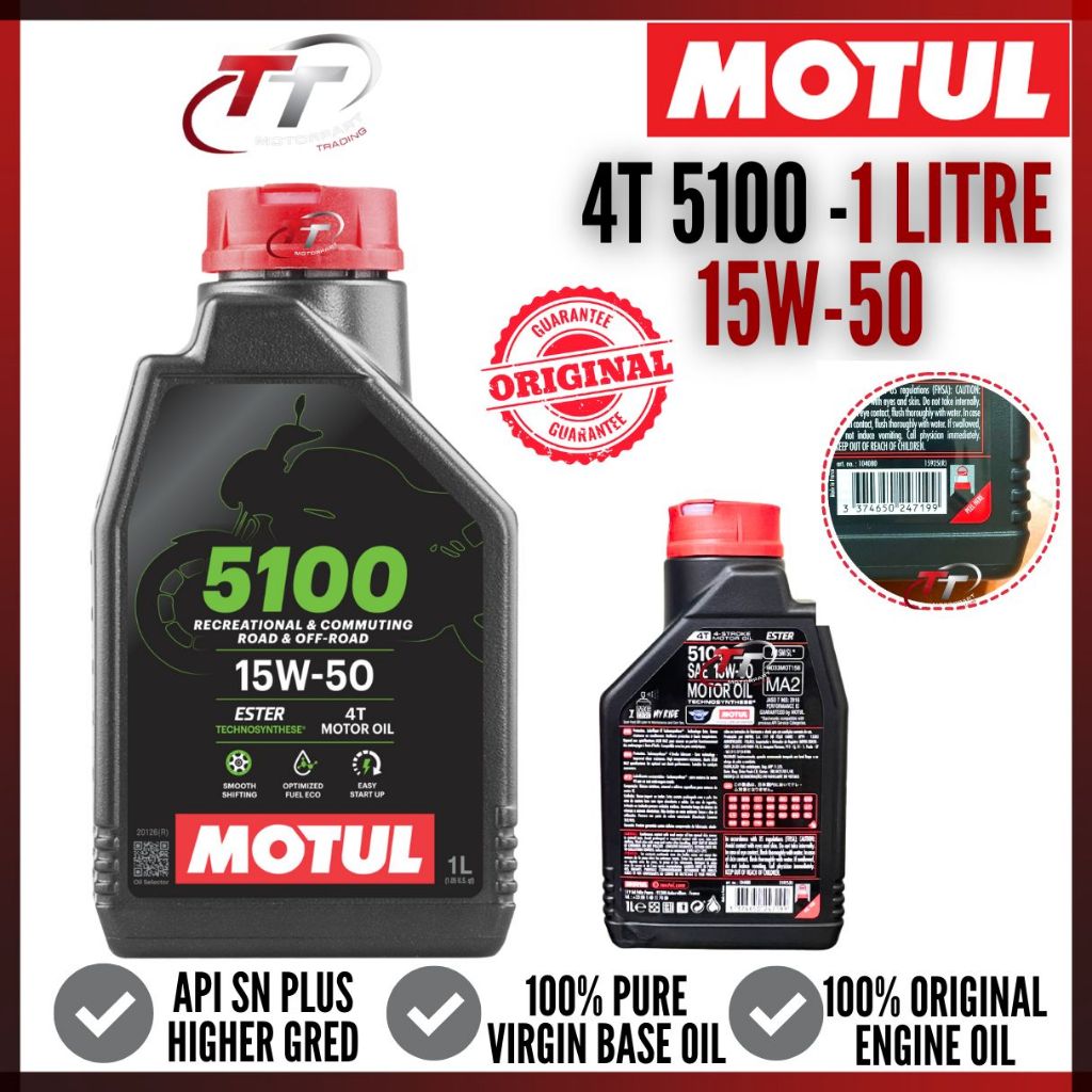 MOTUL 4T 5100 SEMI SYNTHETIC ESTER 10W-40 15W-50 ENGINE OIL LUBRICANT ENJIN MINYAK HITAM MOTORCYCLE 100% ORIGINAL