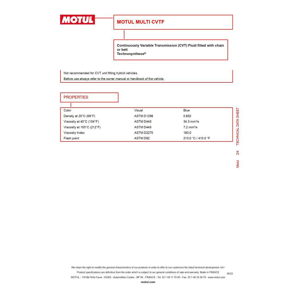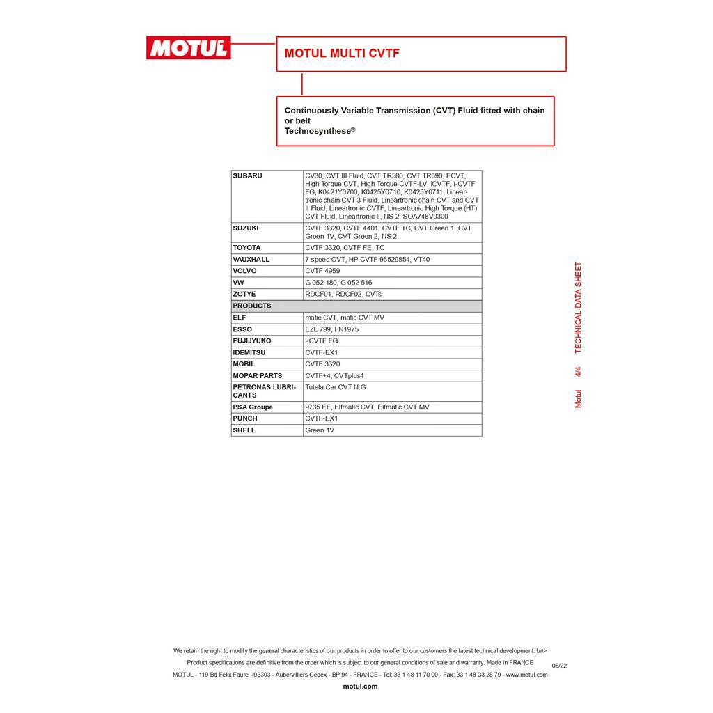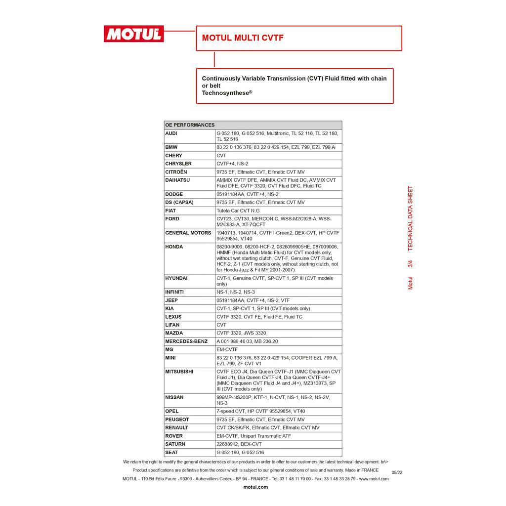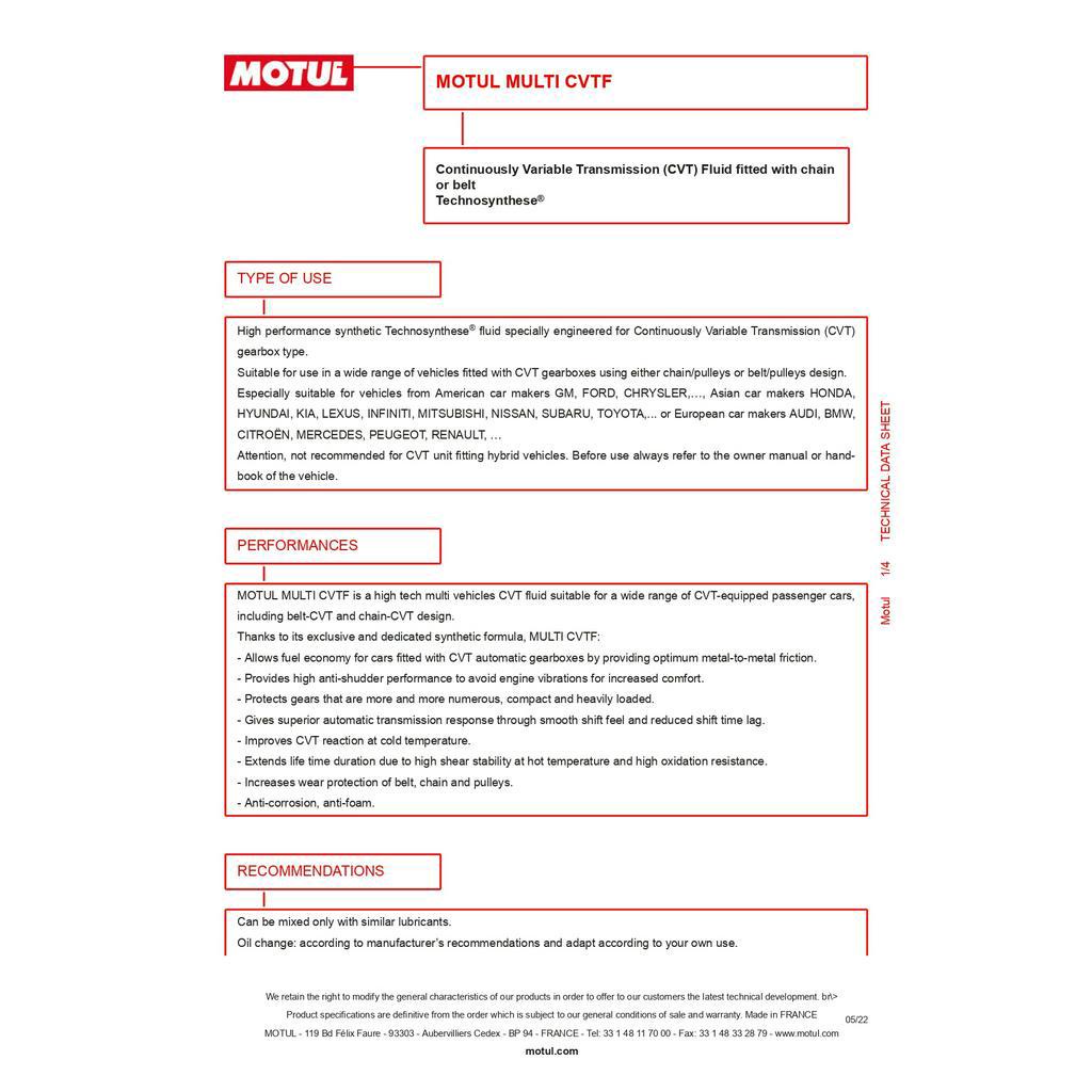 MOTUL Multi CVTF Continuously Variable Transmission fluid