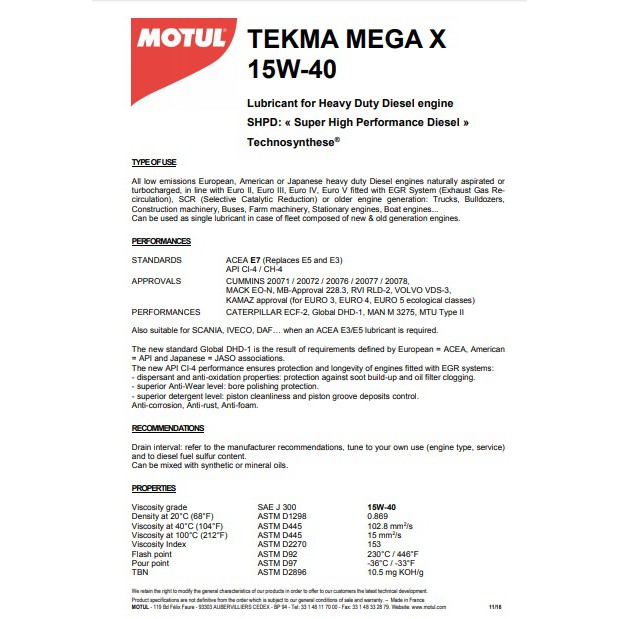 MOTUL TEKMA Mega X 15W40 1L Diesel Engine Oil Heavy Duty Performance