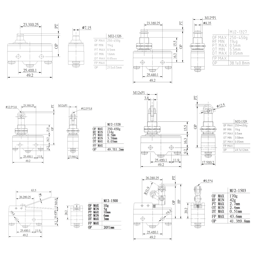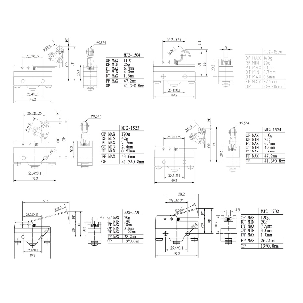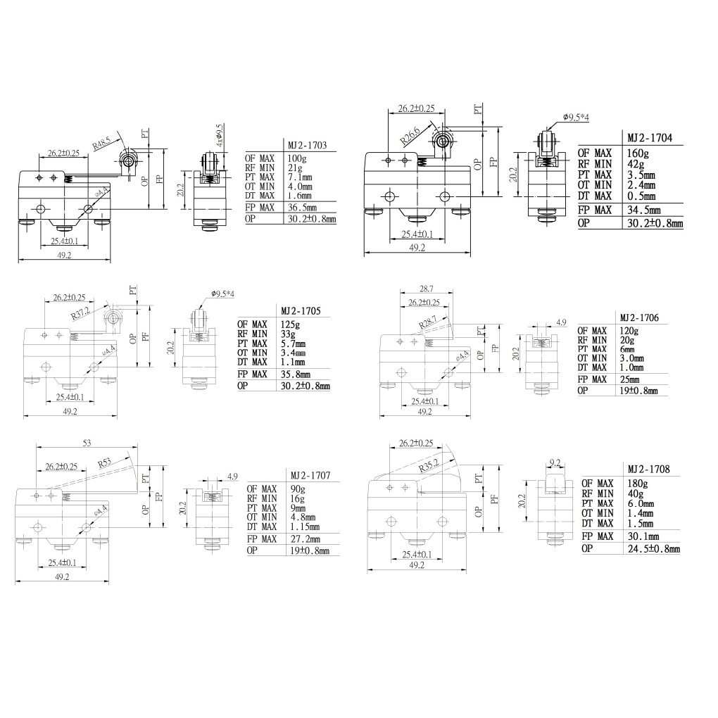 MOUJEN Limit Switch Electric / Micro Switch 15A 250V (MJ2-1701 MJ2-1702 MJ2-1703 MJ2-1704 MJ2-1305 MJ2-1306 MJ2-1307 )