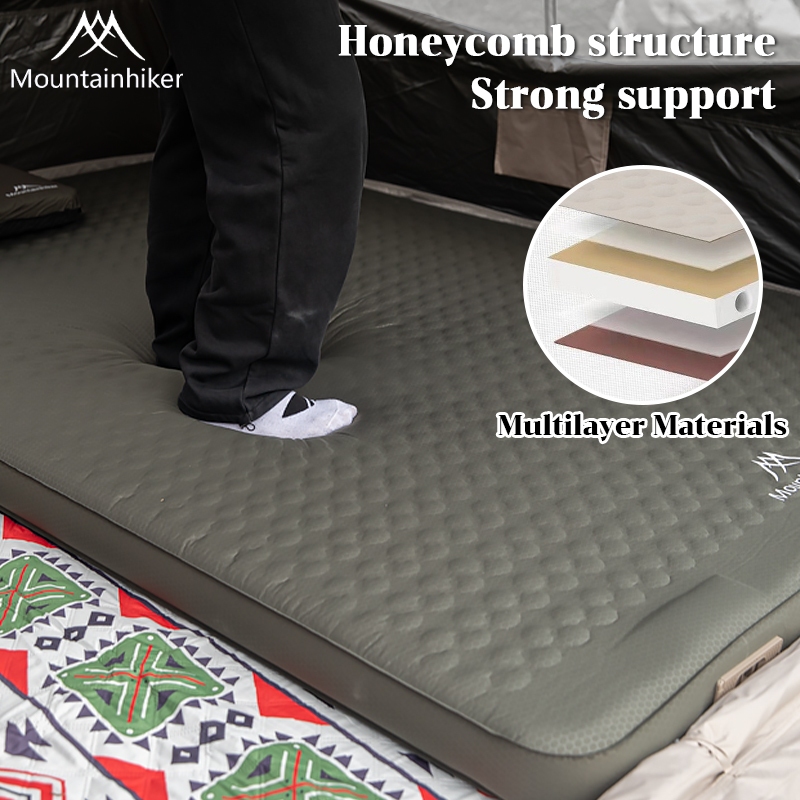 MOUNTAINHIKER Family camping built-in air pump inflatable 3D sponge mattress single double sponge inflatable sleeping pad cheese air cushion comfortable bed
