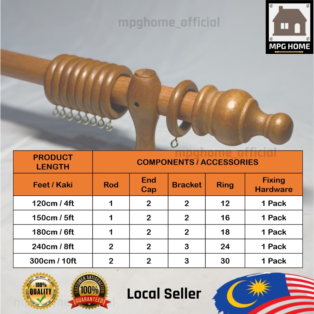 MPG Wooden Curtain Rod Set | Kayu Langsir 28mm Batang Langsir | Kayu Langsir Murah Malaysia Seller