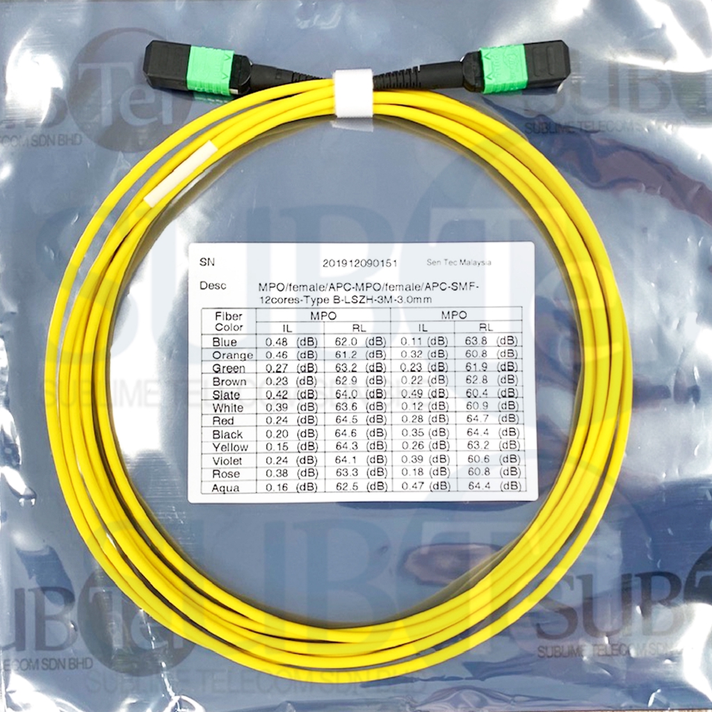 MPO-MPO Female APC 12 Cores Single Mode SM Fiber Optic Trunk Cable Singlemode MPO MTP Patch Cord 3m 5m