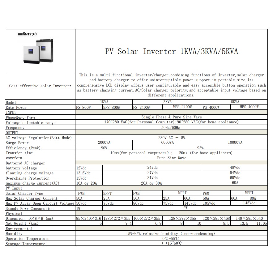 MPPT Solar Inverter 3KVA MPS2400W 24V 60A Max PV Array 145Vdc