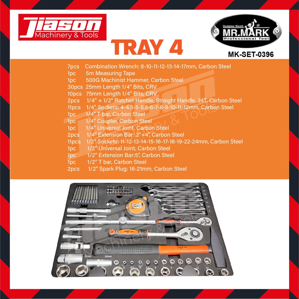 MR MARK MK-SET-0396 141PCS 1/4" & 1/2" Tool Kit Set with Aluminium Tool Case Trolley + FOC 3 Layer Service Cart