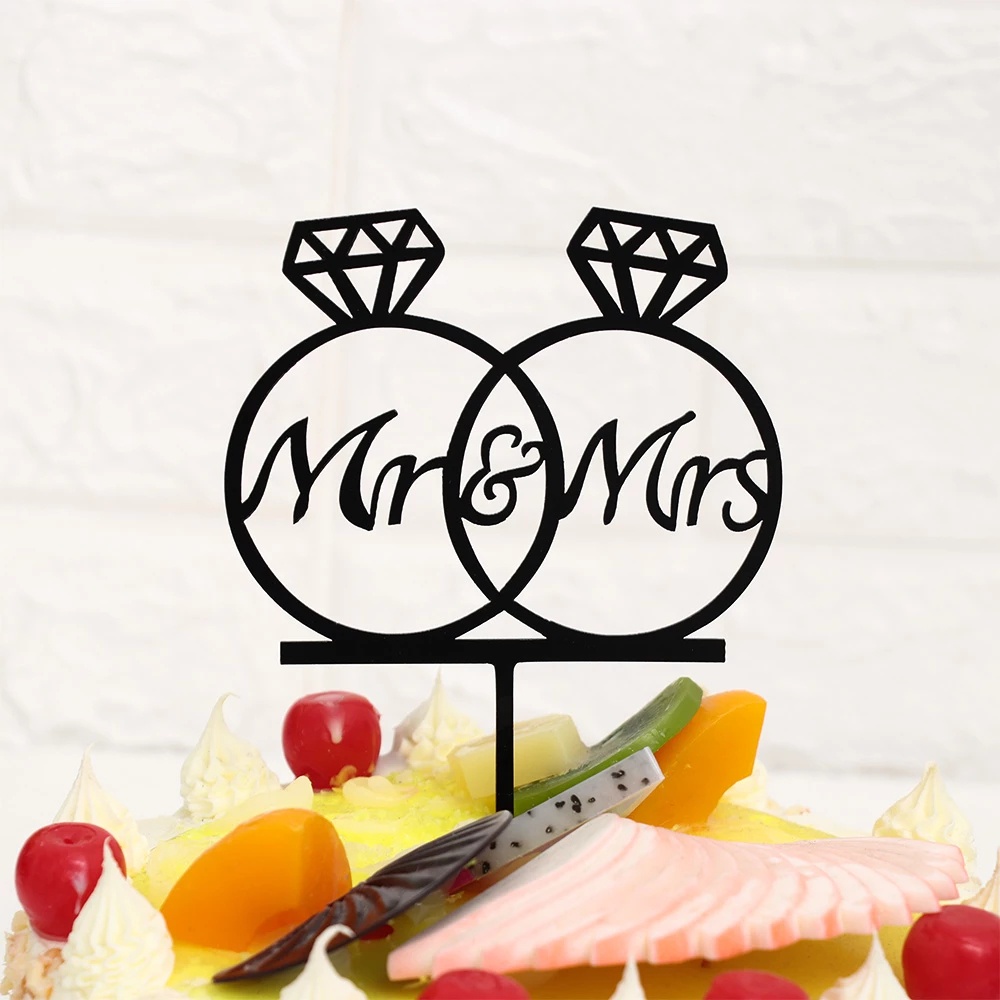 MR & MRS Cake Topper Wedding Cake Topper Bride and Groom Gold Black Acrylic Mr&Mrs Cake Topper Mariage Engagement Party Wedding Cake Decorations