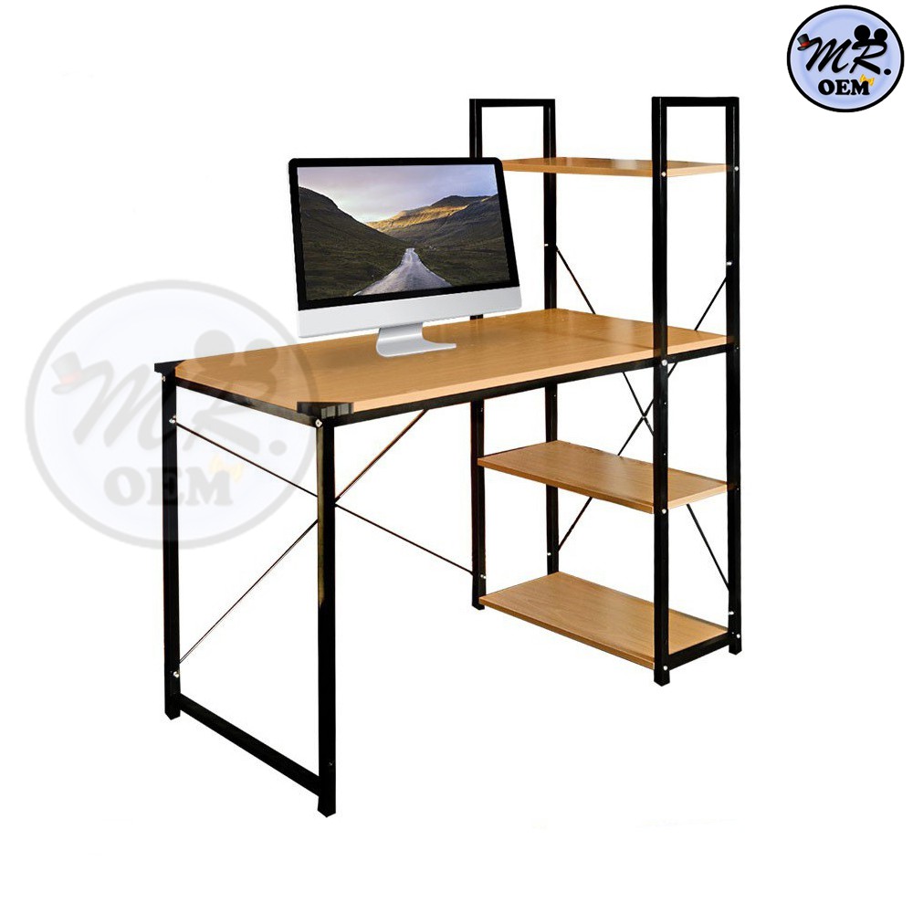 MR OEM Modern Computer Desk / Laptop Desk/ Office Table/ Laptop Desk/ Study Table With Book Shelf Rak Meja Komputer