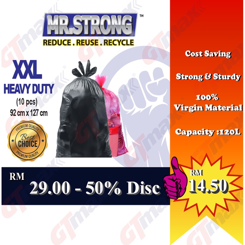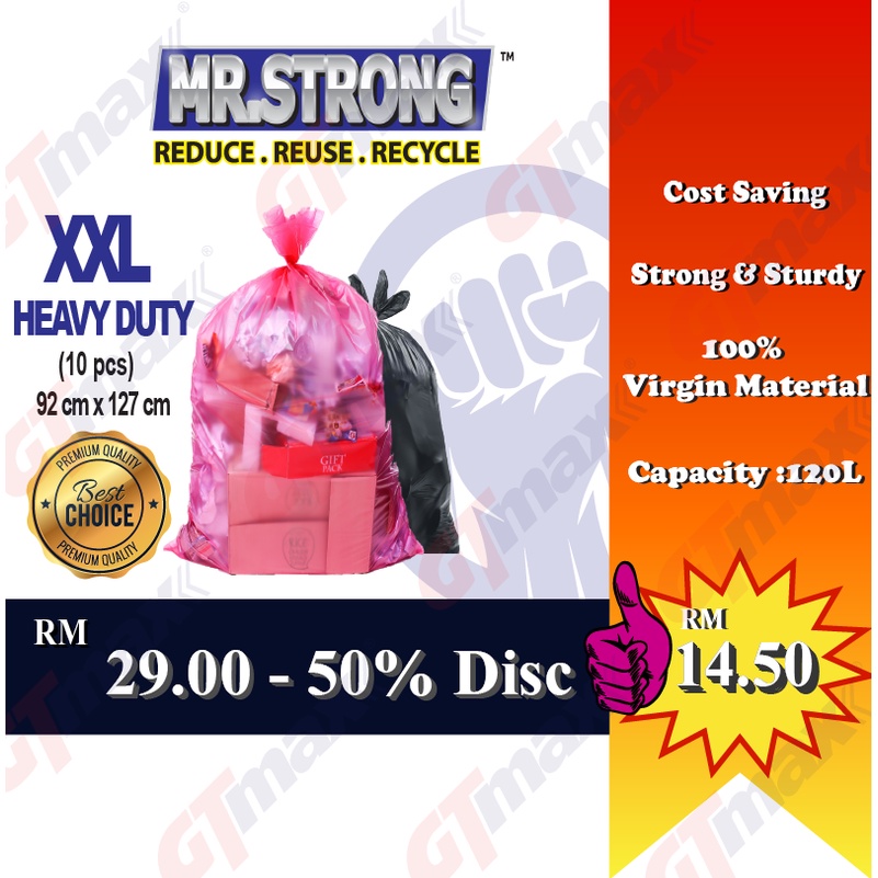 MR STRONG Garbage Bag (XXL Size) Heavy Duty Plastic Bag Trash Bag Plastik Sampah 120L