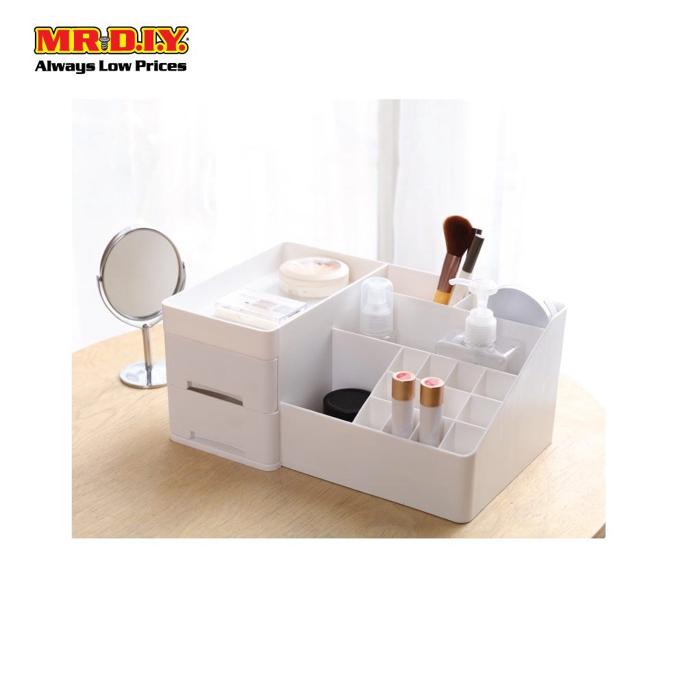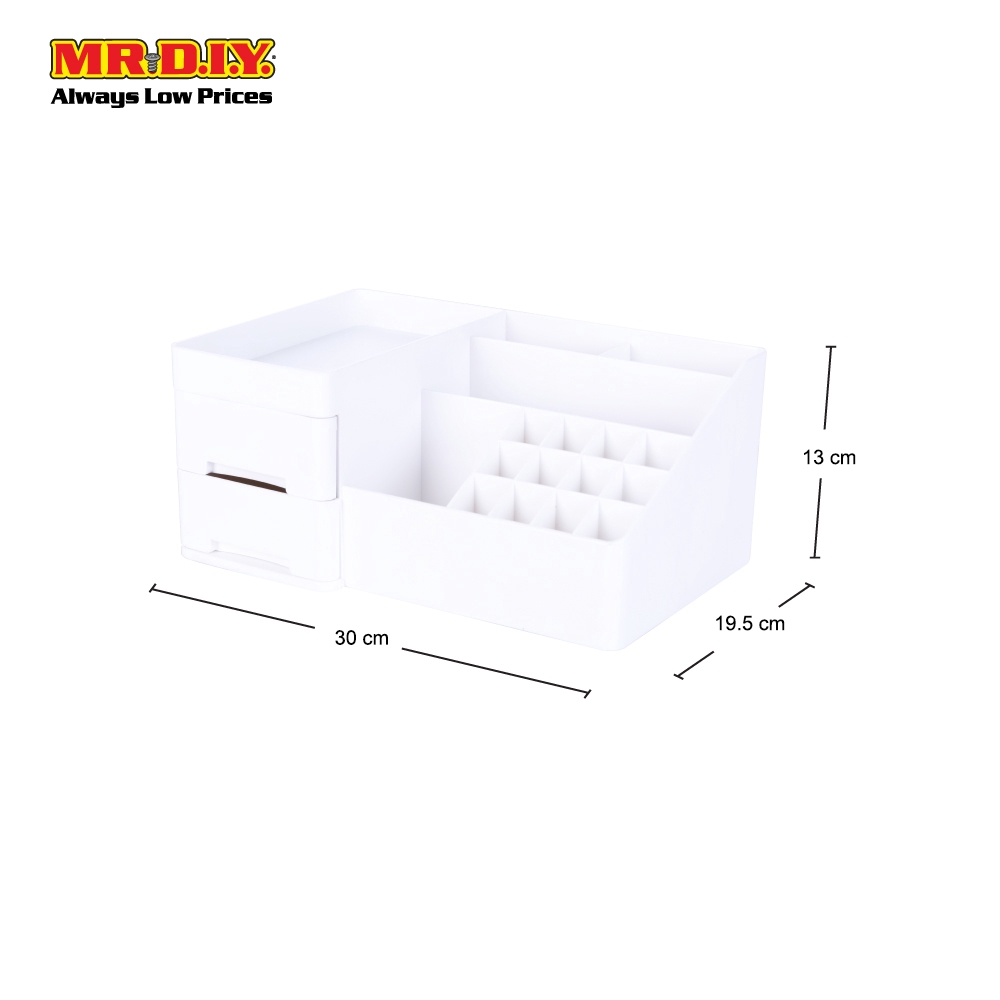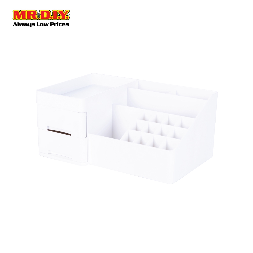 MR.DIY Plastic 2-Drawers Compartment Cosmetic Storage Box Set White (30cm x 19.5cm)