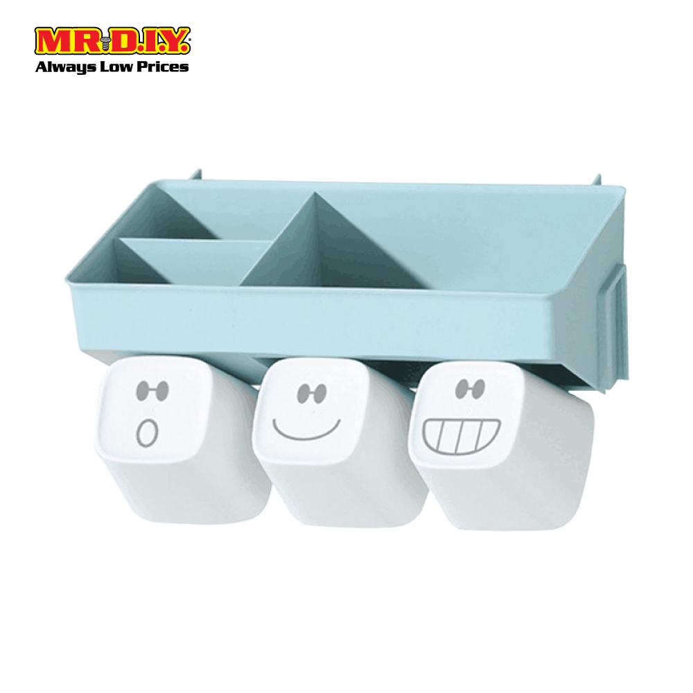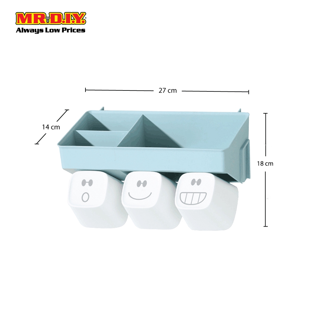 MR.DIY Plastic Wall-Mounted Toothbrush 6 Holders Storage Box Set Cyan (27cm x 14cm)