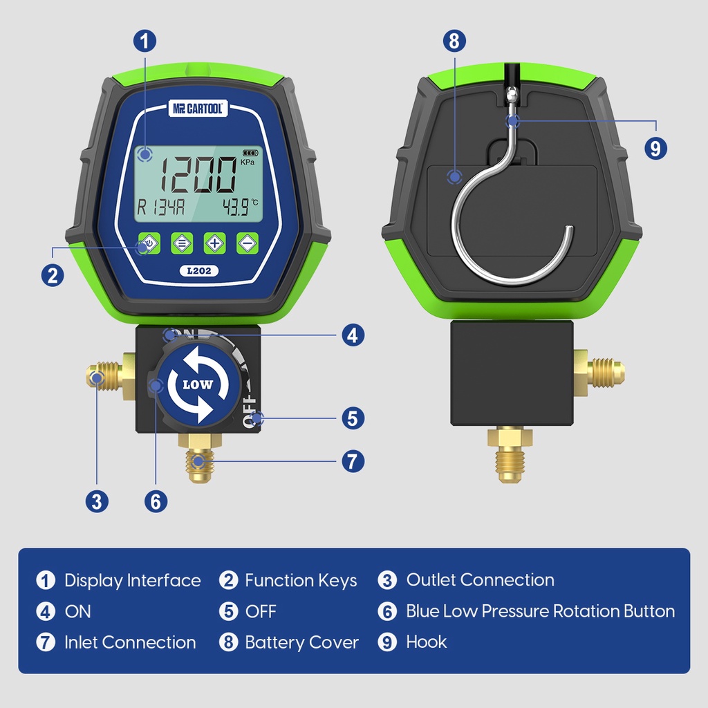 MRCARTOOL L202 Digital Manifold Gauge Gas Meter R22, R134A, R410A, R407C Air Conditioning Refrigerant Leak Tester Gauge Kit HVAC Vacuum Temperature Gauge Refrigerator Repair