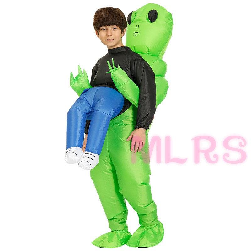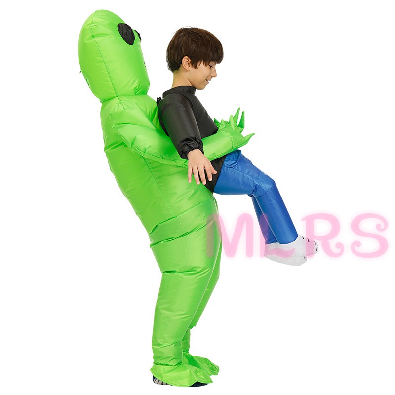 MS Green Alien Carrying Human Costume Inflatable Funny Blow Up Suit Cosplay for Party &SZ