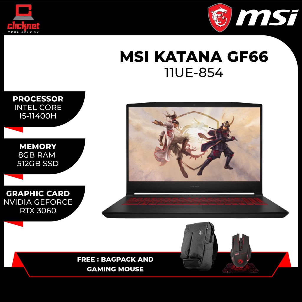 MSI Gaming Laptop GF66 11UE 854 15.6" FHD IPS 144Hz (Intel i5-11400H, 8GB RAM, 512GB PCie SSD, Nvidia RTX3060 6GB, W11)