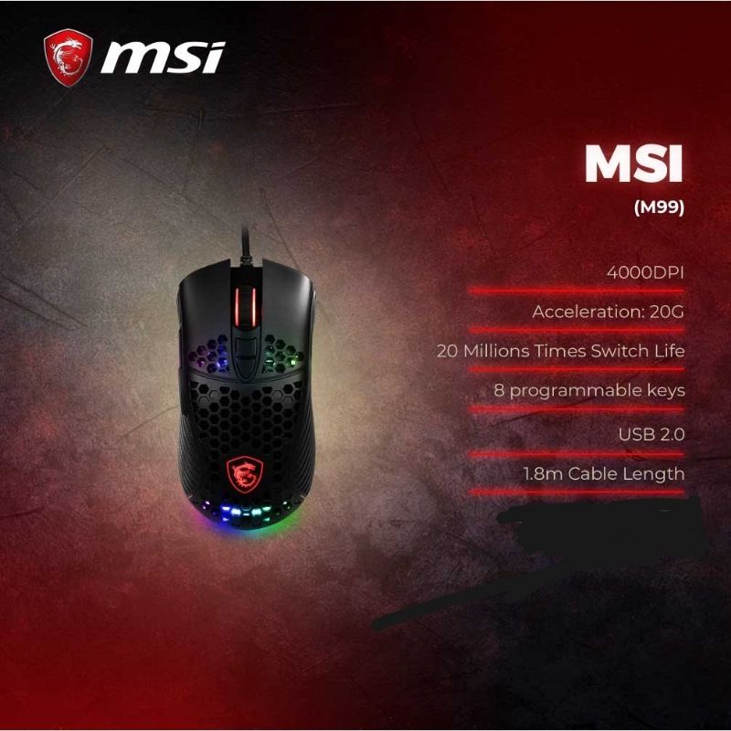 MSI M99 RGB GAMING MOUSE - 1 MONTH WARRANTY