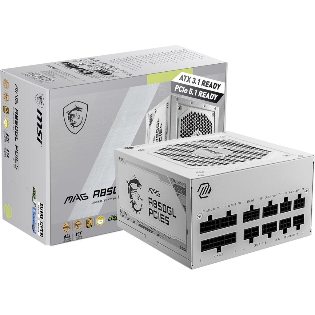 MSI MAG A650GL / A750GL / A850GL 80PLUS GOLD PCIe 5 Power Supply (650W/750W/850W)