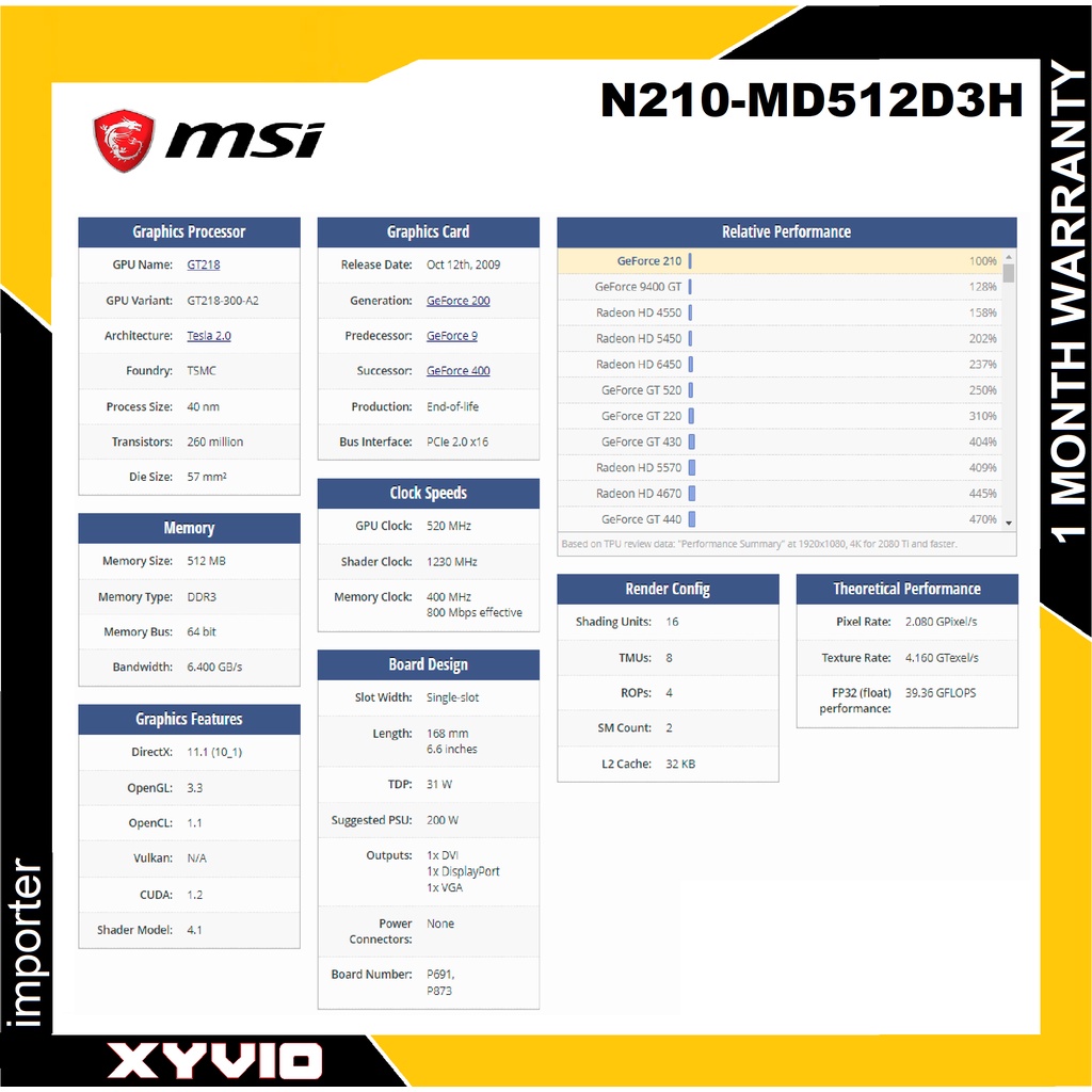 MSI MSI N210-MD512D3H0-LP NVIDIA GeForce GT 730 512MB GPU GRAPHICS CARD