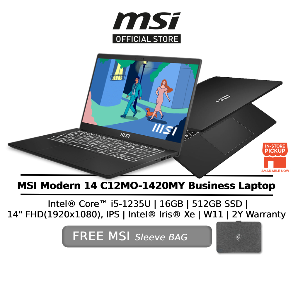 MSI Laptop Modern 14 With Sleeve Bag (i5-1235U/16GB/512GB SSD/14") C12MO-1420MY