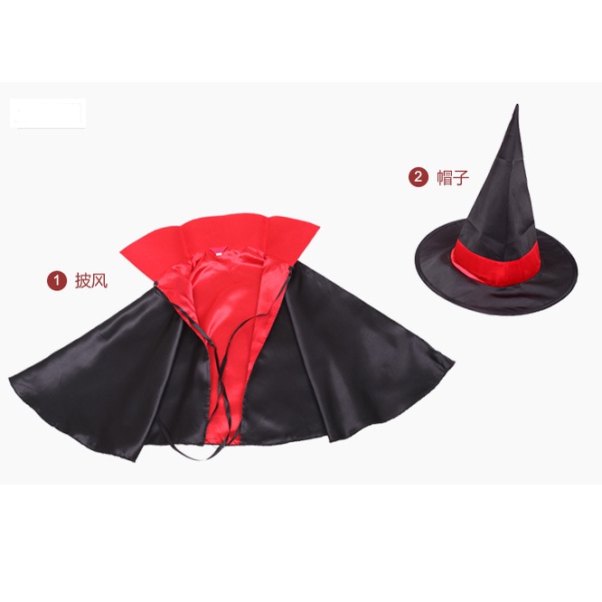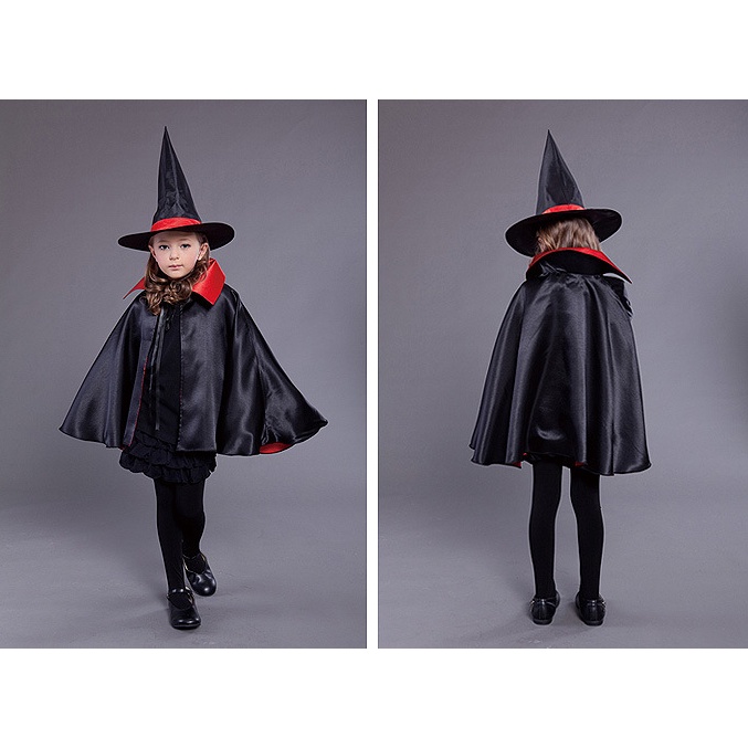 MSIA Ready Stock/ Halloween Cape 0.8M Witch Set Kids Dual Cloak Witch Death Vampire Cosplay Cape Carnival Dress Fancy