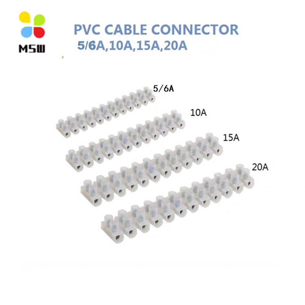 MSW PVC Wire Cable connector connecter Terminal Block 12 Position Barrier Wire connector Wayar Elektrik 6A 10A 15A 20A