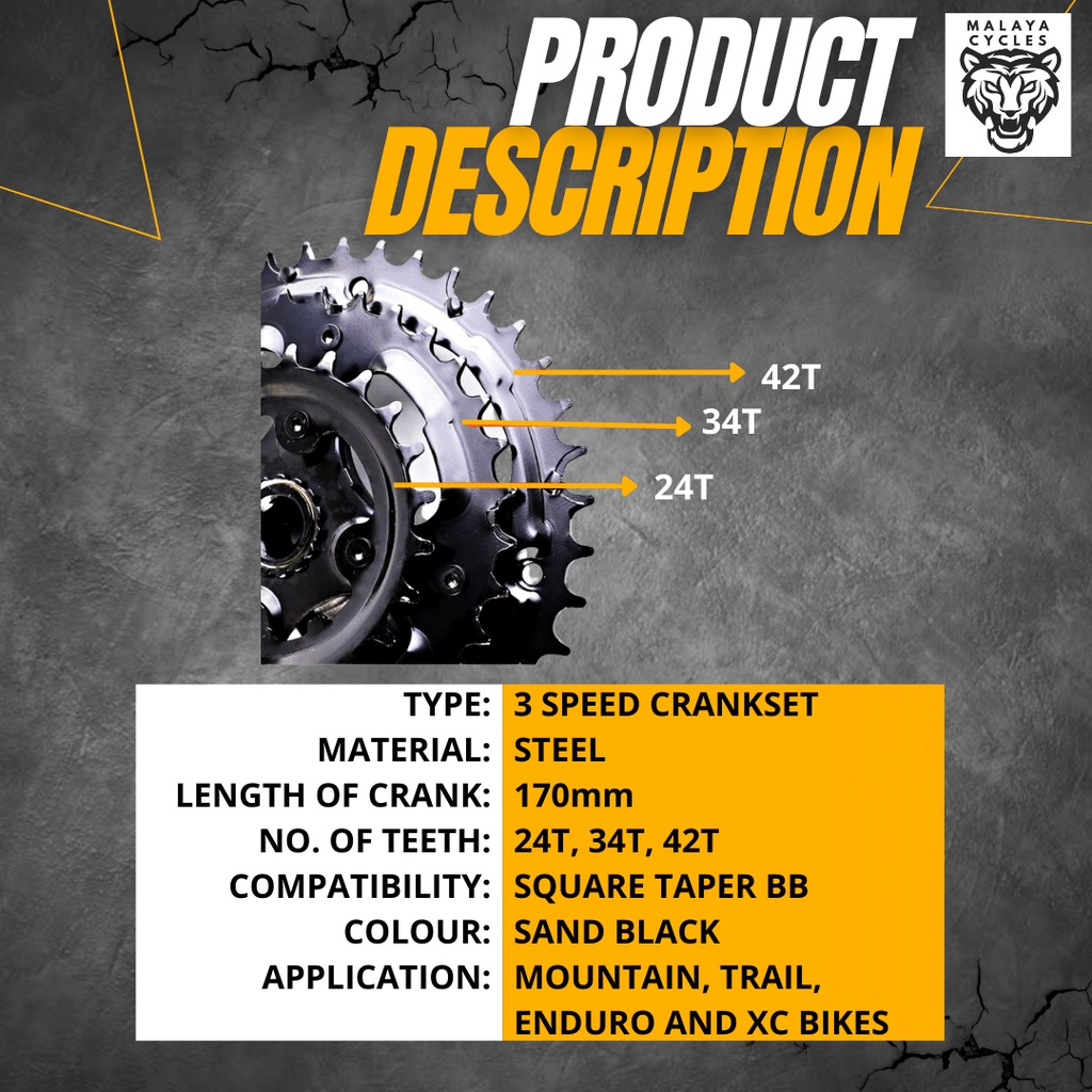 MTB / Folding Bike Crankset 24/34/42 Teeth 170mm Alloy Fatbike Crankset fatbike Crank arm