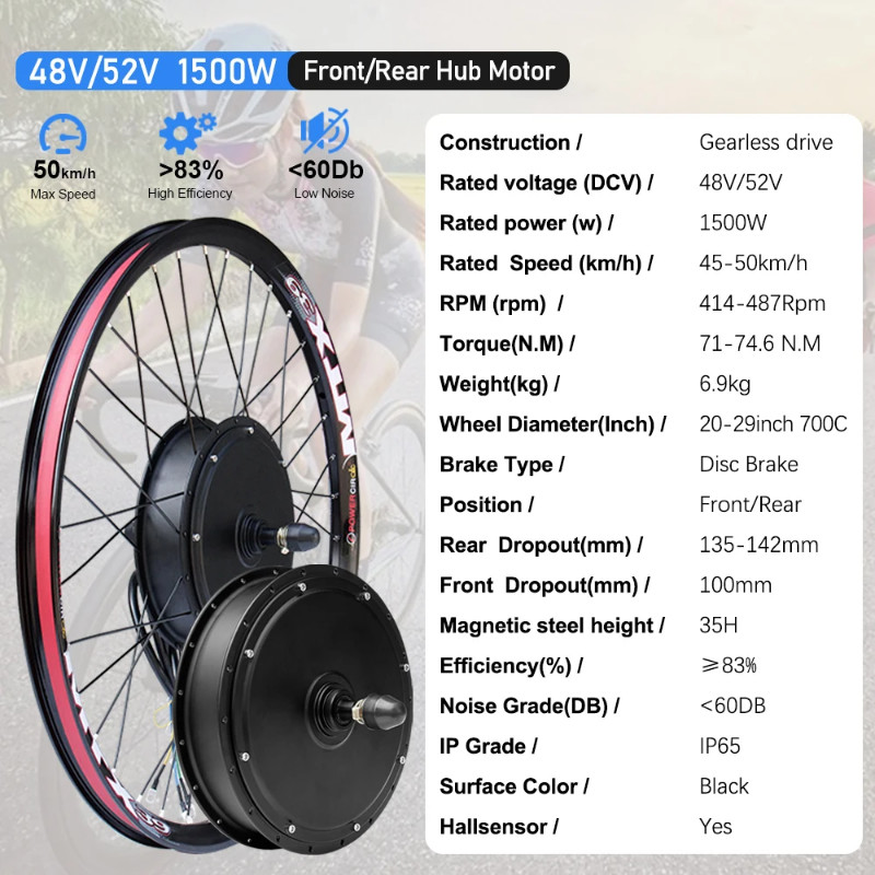 MTX Rim 52V 1500W Electric Bike Conversion Kit 48V 1500W Brushless Rear Wheel Hub Motor For Ebike Conversion Kit 20-29in
