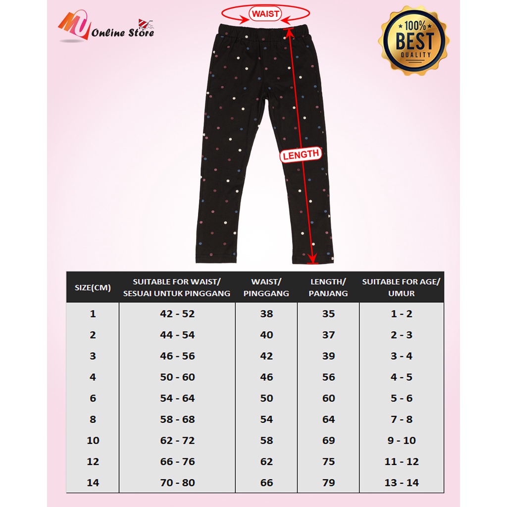 MU SELUAR FESYEN BUDAK PEREMPUAN / SELUAR LEGGING KANAK KANAK / SELUAR PANJANG COTTON / SELUAR PANJANG BUDAK CORAK 5520