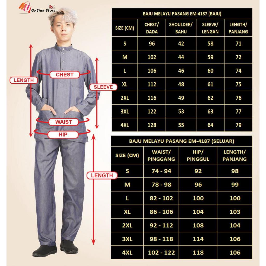 MU SET BAJU MELAYU MODERN SLIM FIT DEWASA / BAJU MELAYU SEPASANG / BAJU RAYA DEWASA / BAJU MELAYU 4187-BMM