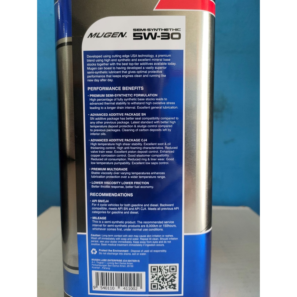 MUGEN SEMI SYNTHETHIC ENGINE OIL 5W-30 API SN/CJ4 4L minyak engin minyak sintetik proton perodua toyota nissan honda