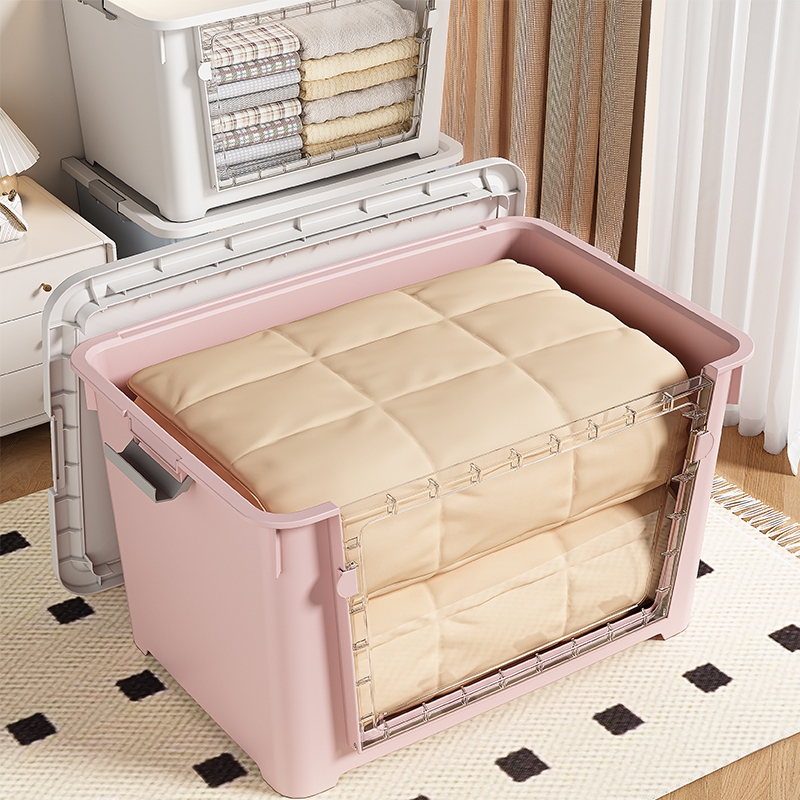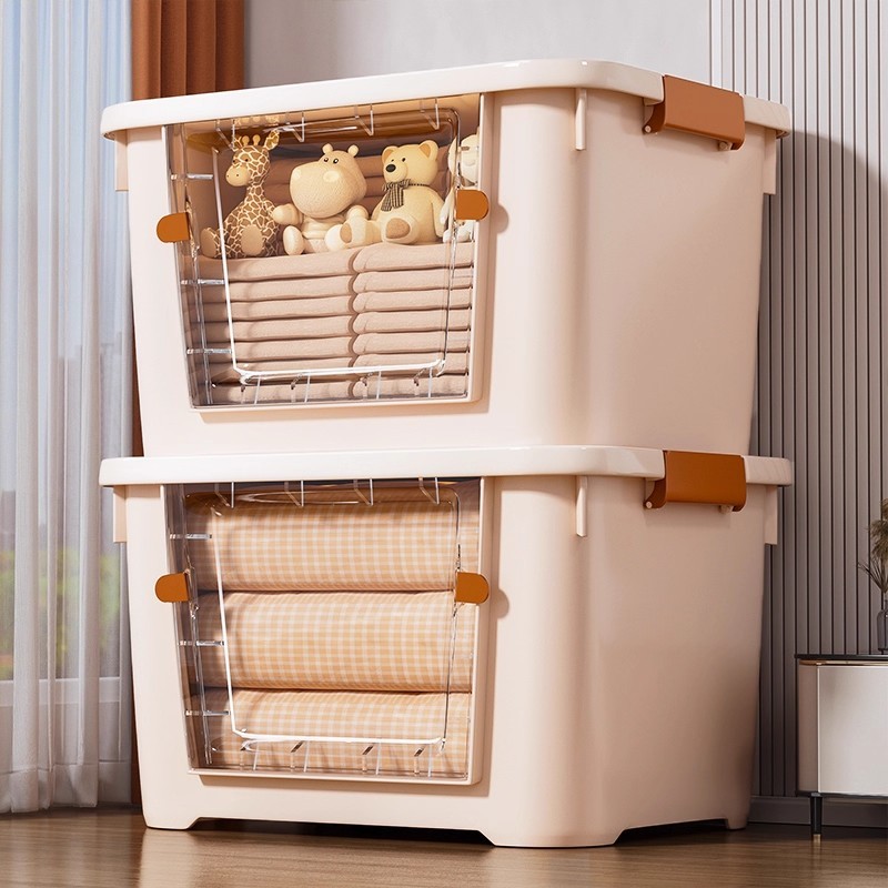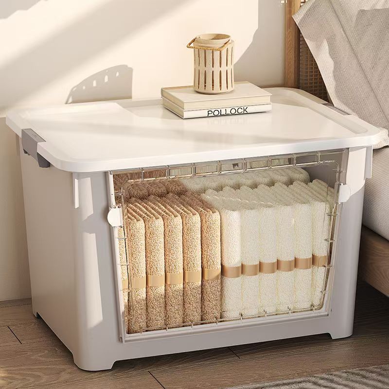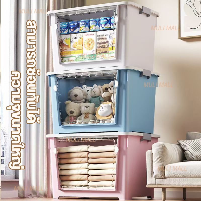 MULI Front Opening Storage Box Transparent With Wheels Stackable Easy To Open Safe Non-Toxic