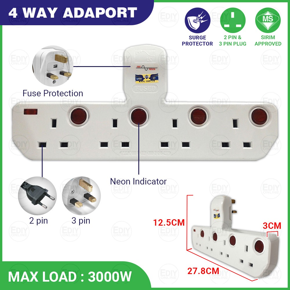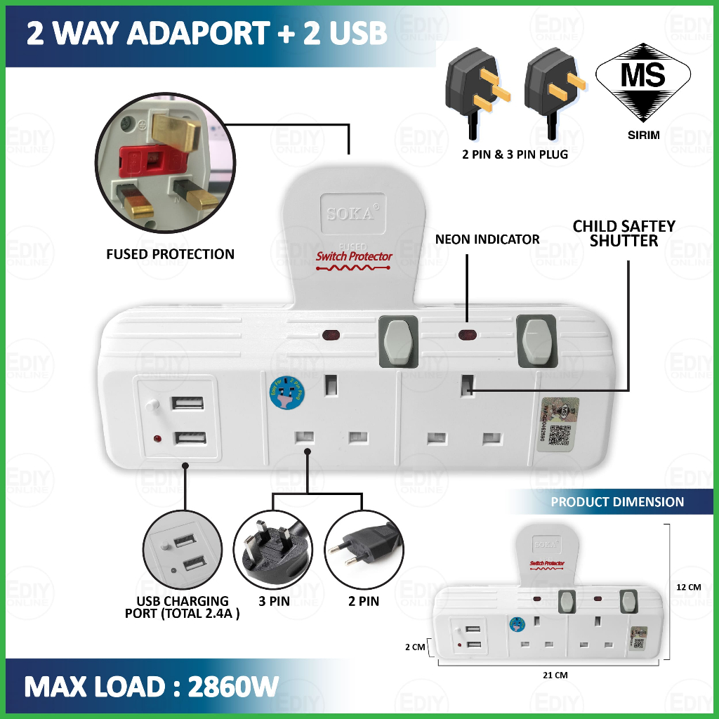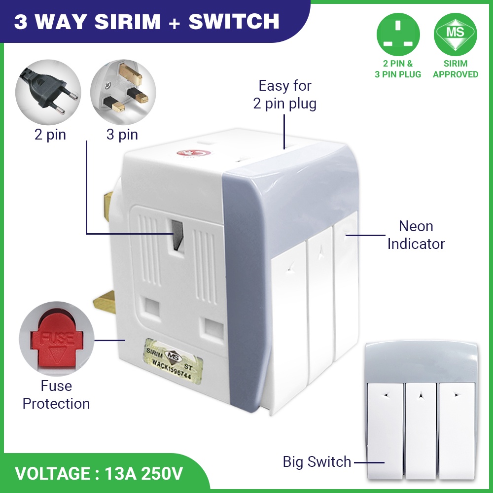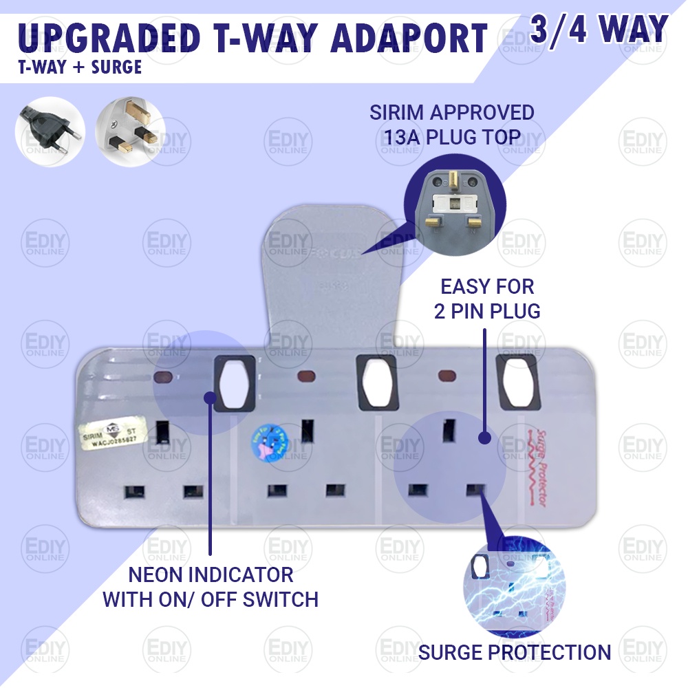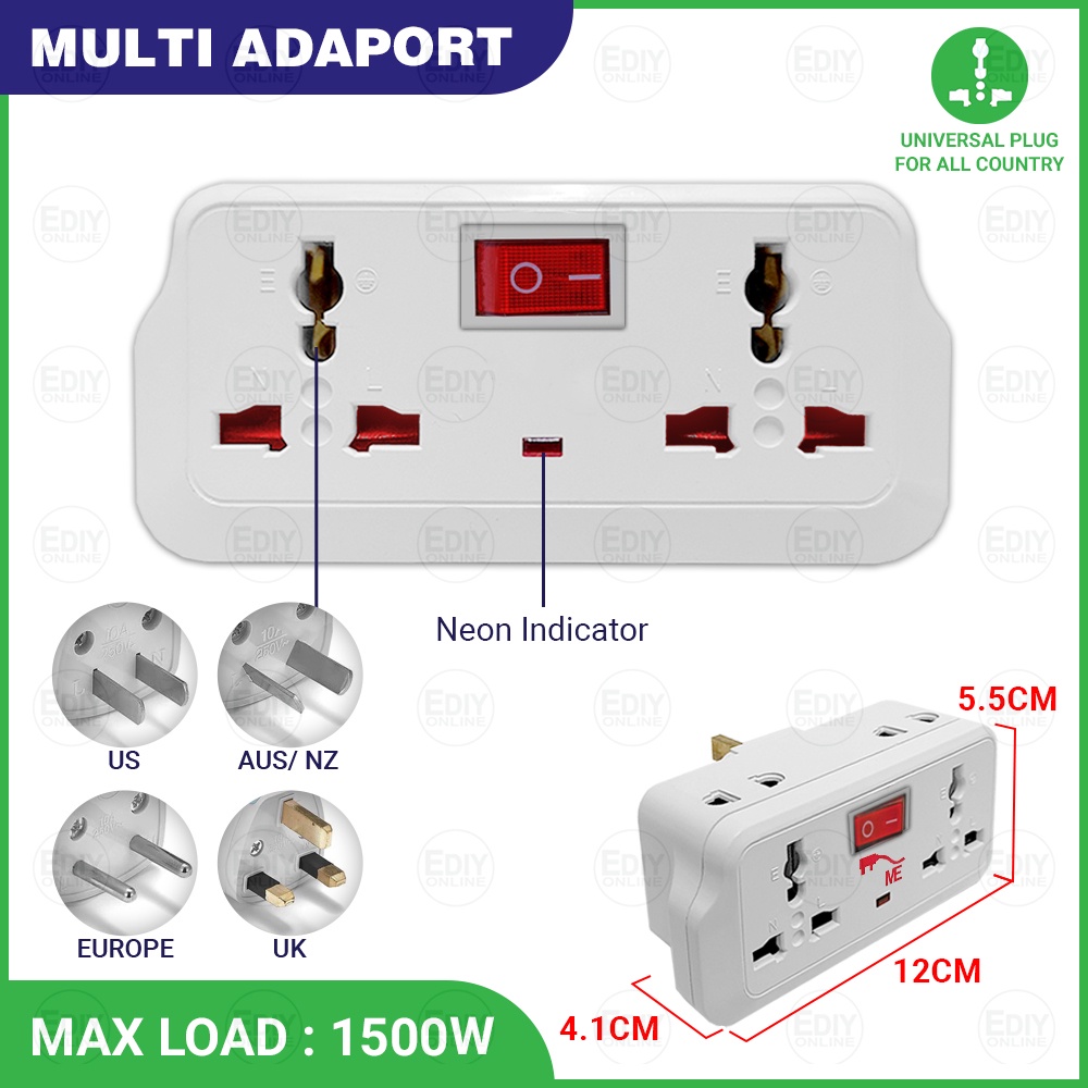 Universal Outlet Adaport T Way Multi Adaptor 3 pin USB Wall Extension Plug Trailing Socket Extension Adapter Soket