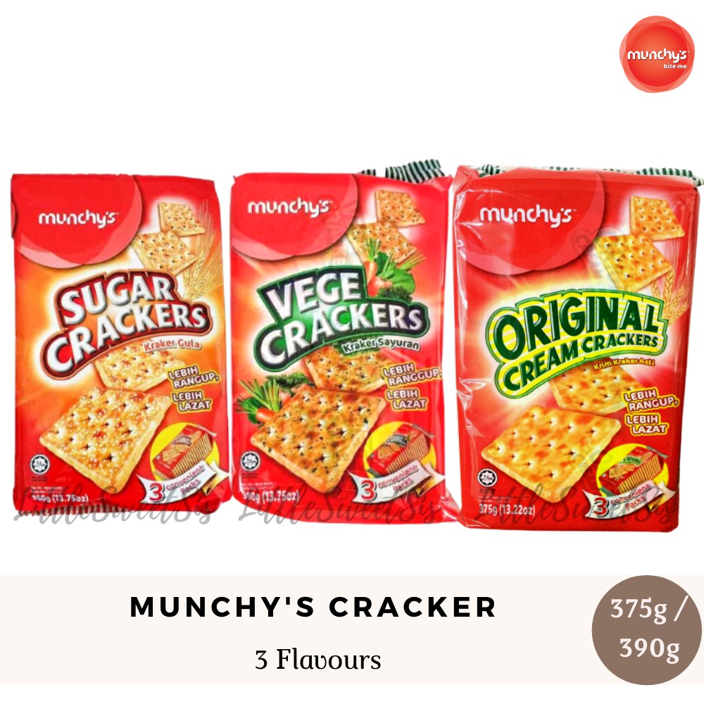 MUNCHY'S CREAM CRACKERS/ SUGAR CRACKERS/ VEGETABLE CRACKERS -3 CONVENIENT PACKS [375G ~ 390G]