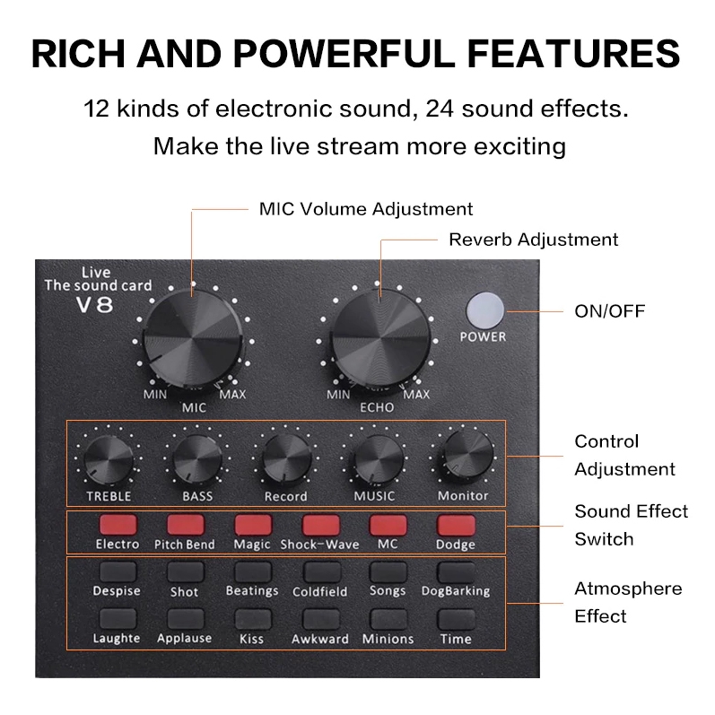 MUZIK+ Sound Card V9X PRO/V8X PRO/V8 English VersionAudio USB Headset Microphone Webcast Live for Mic Phone Computer
